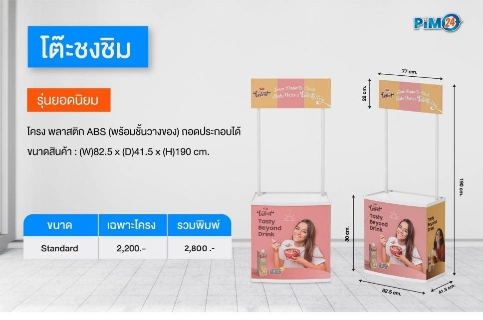 50% off โต๊ะชงชิม โต๊ะชงชิม รุ่นประหยัด โต๊ะชงชิม รุ่นประหยัด ออกบูธ โต๊ะชงชิมราคาถูก สินค้าคุณภาพได้มาตรฐาน ผลิตเร็ว อุปกรณ์ออกบูธครบวงจร เคาท์เตอร์แสดงสินค้ามาตรฐานเคลื่อนย้ายได้ 1,700.00฿ Add to cart